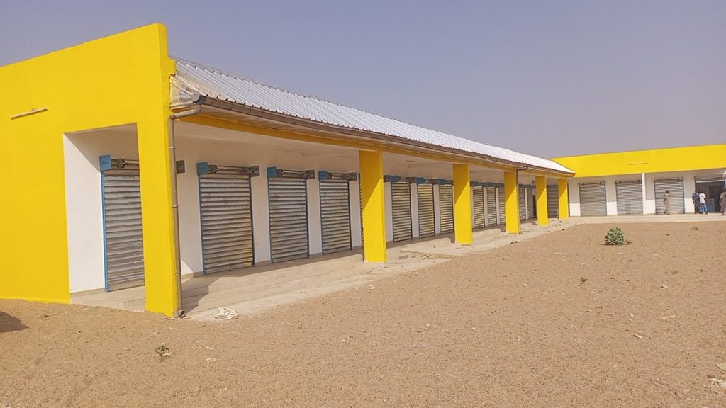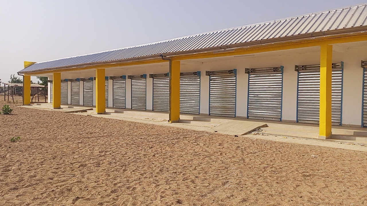 ce marché moderne comprend notamment une chambre froide, pour la conservation des viandes, des étals pour la vente, un bloc administratif pour la gestion et des installations sanitaires pour maintenir la propreté.